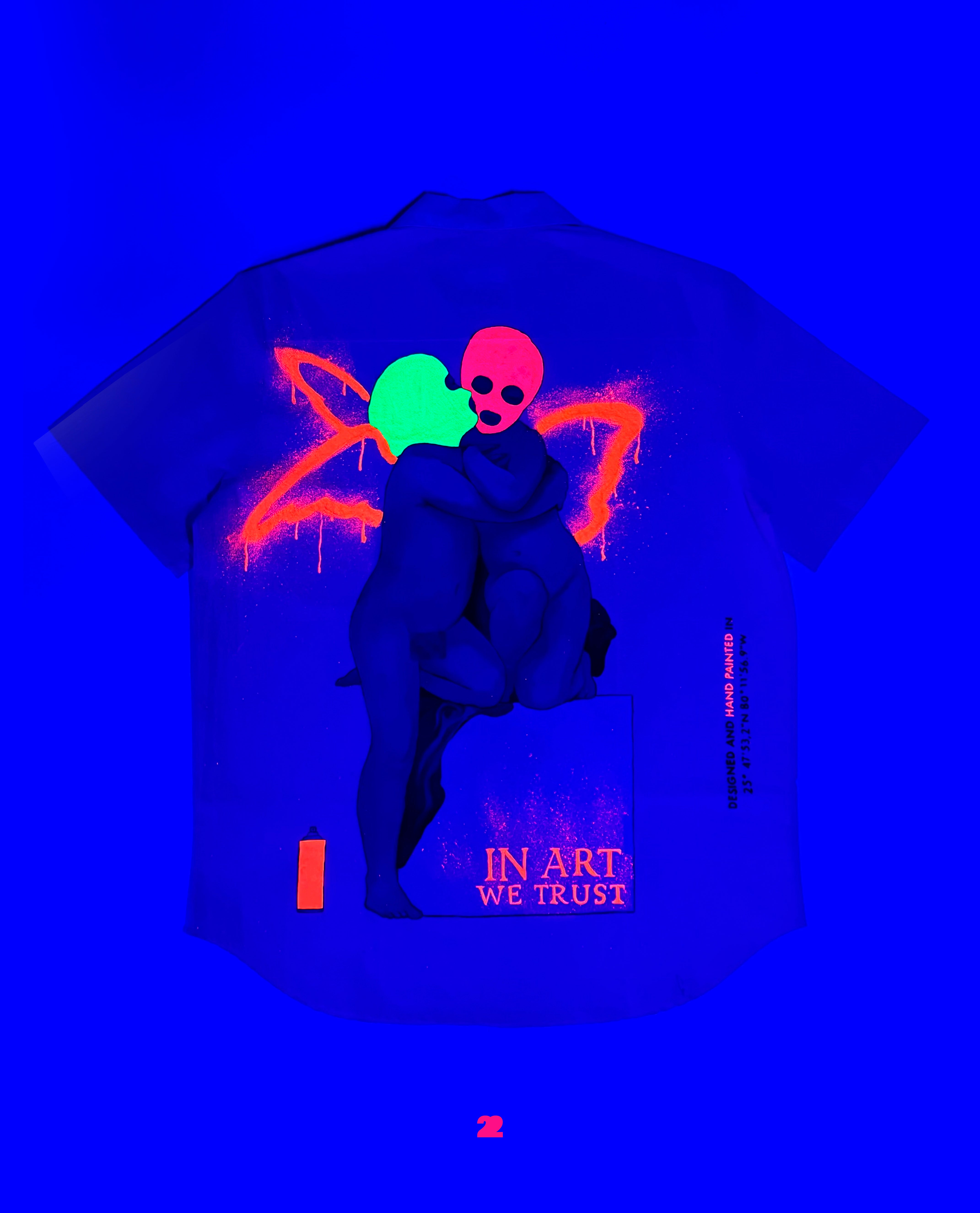 Cada camisa de la colección presenta un cautivador efecto que brilla en la oscuridad y revela detalles ocultos que cobran vida cuando se apagan las luces.